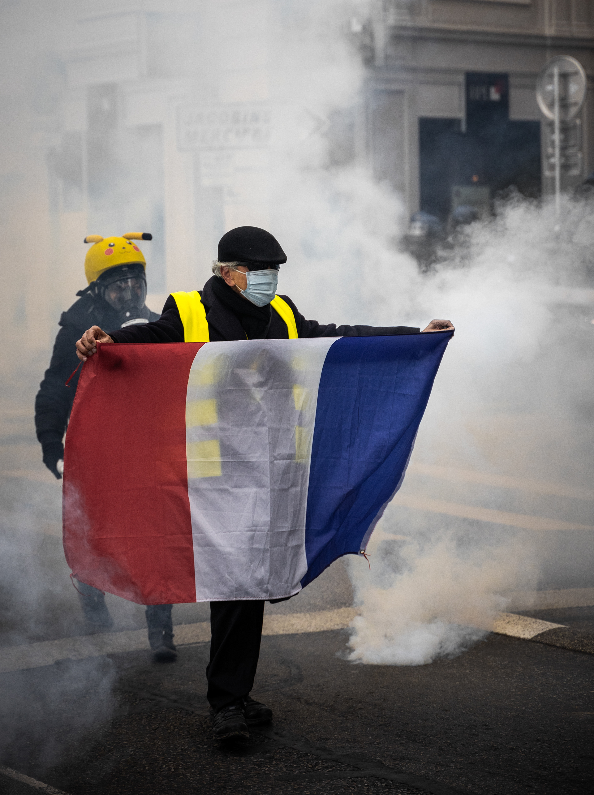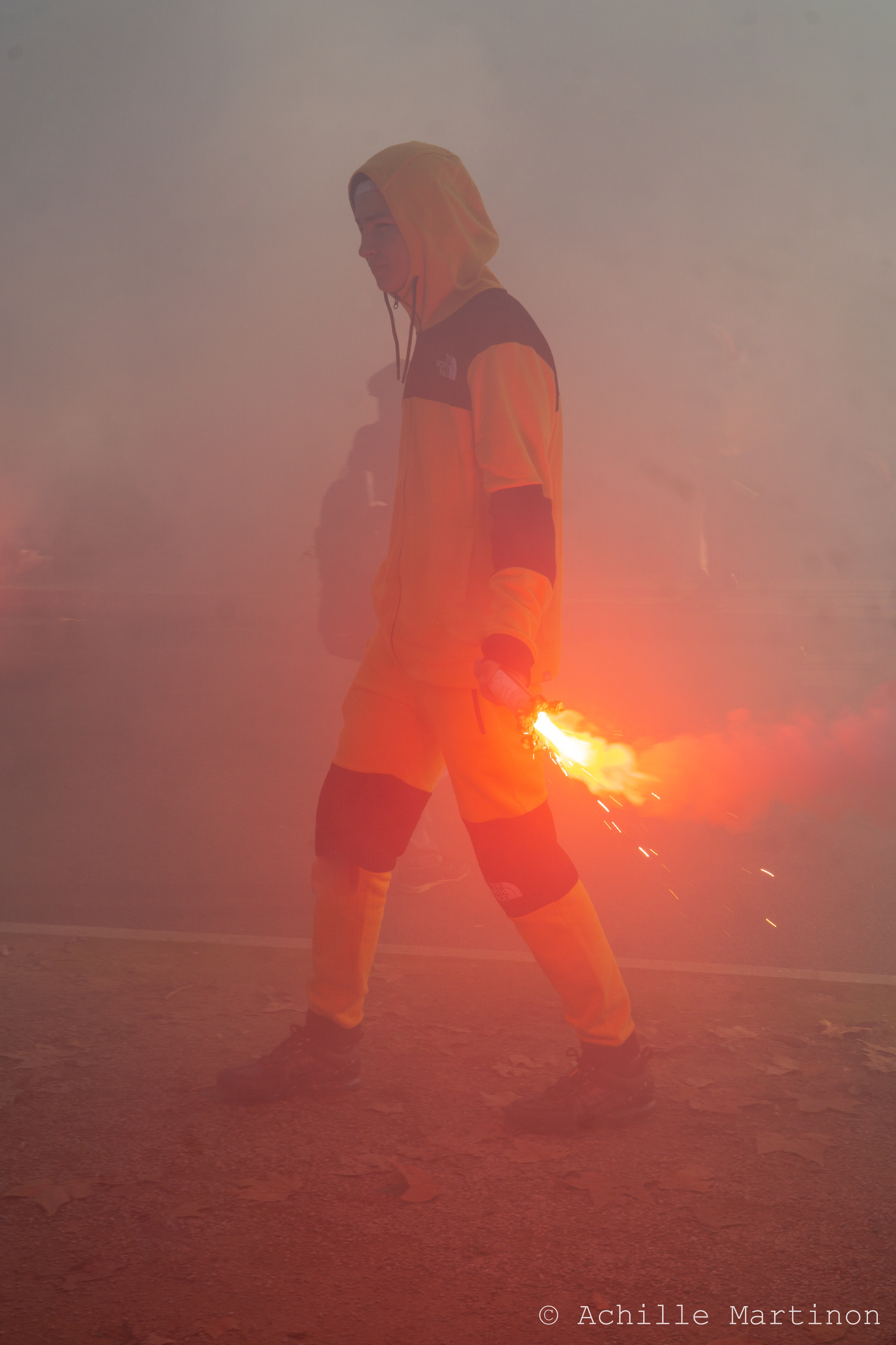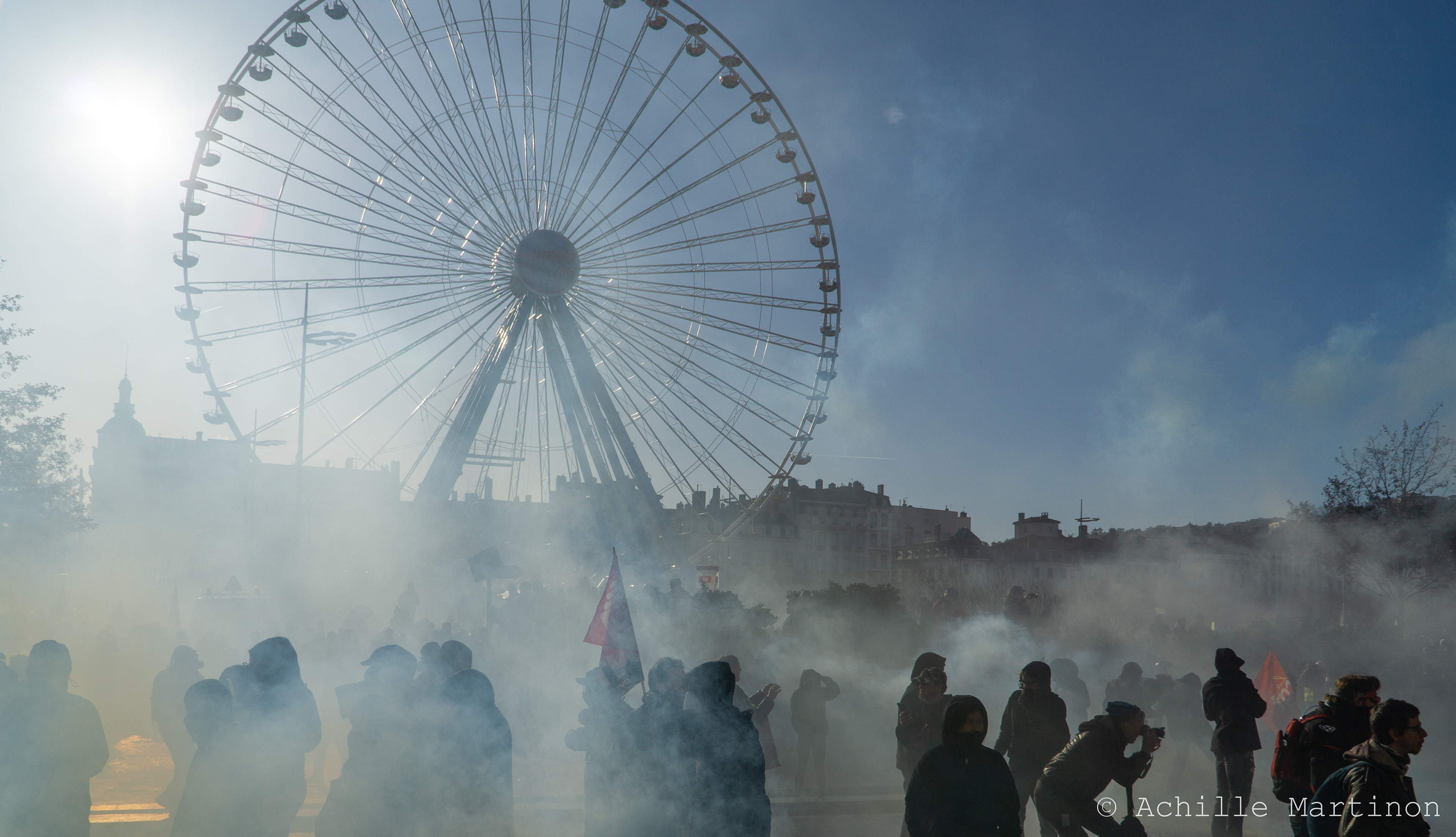 Je réalise depuis deux ans des photos en manifestations très régulièrement. Cette pratique oblige le photographe à réaliser des images même en plein stress au milieu des gaz.