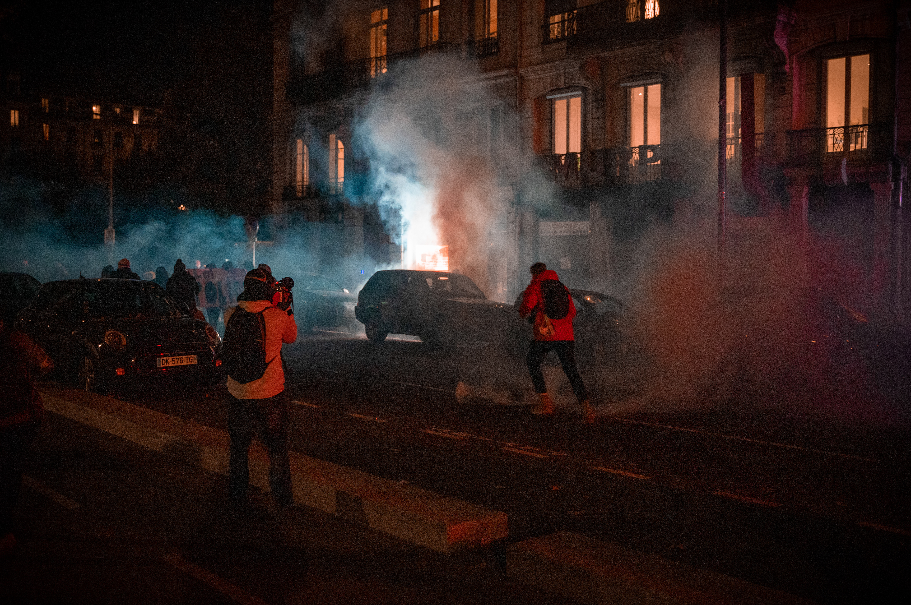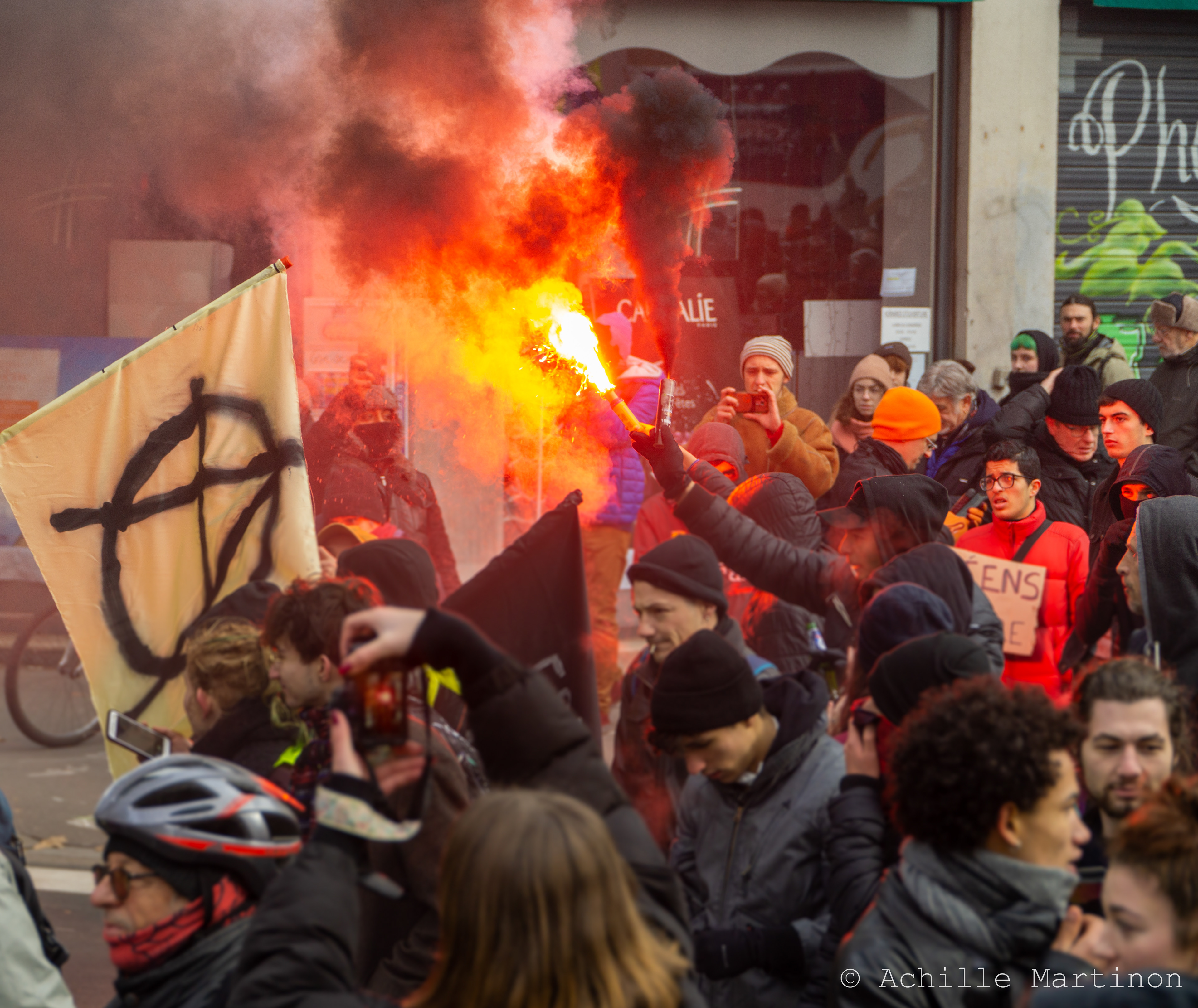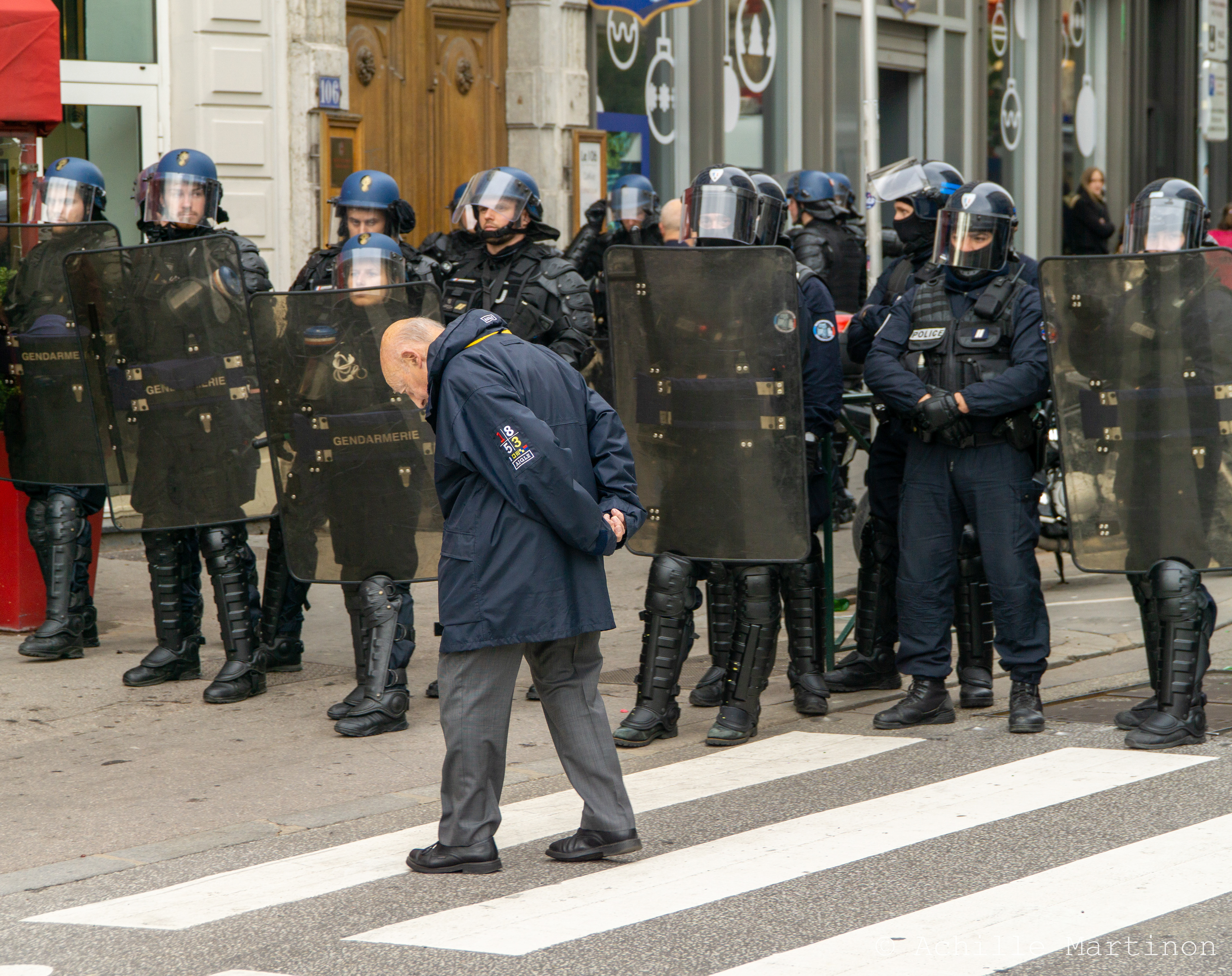 Je réalise depuis deux ans des photos en manifestations très régulièrement. Cette pratique oblige le photographe à réaliser des images même en plein stress au milieu des gaz.